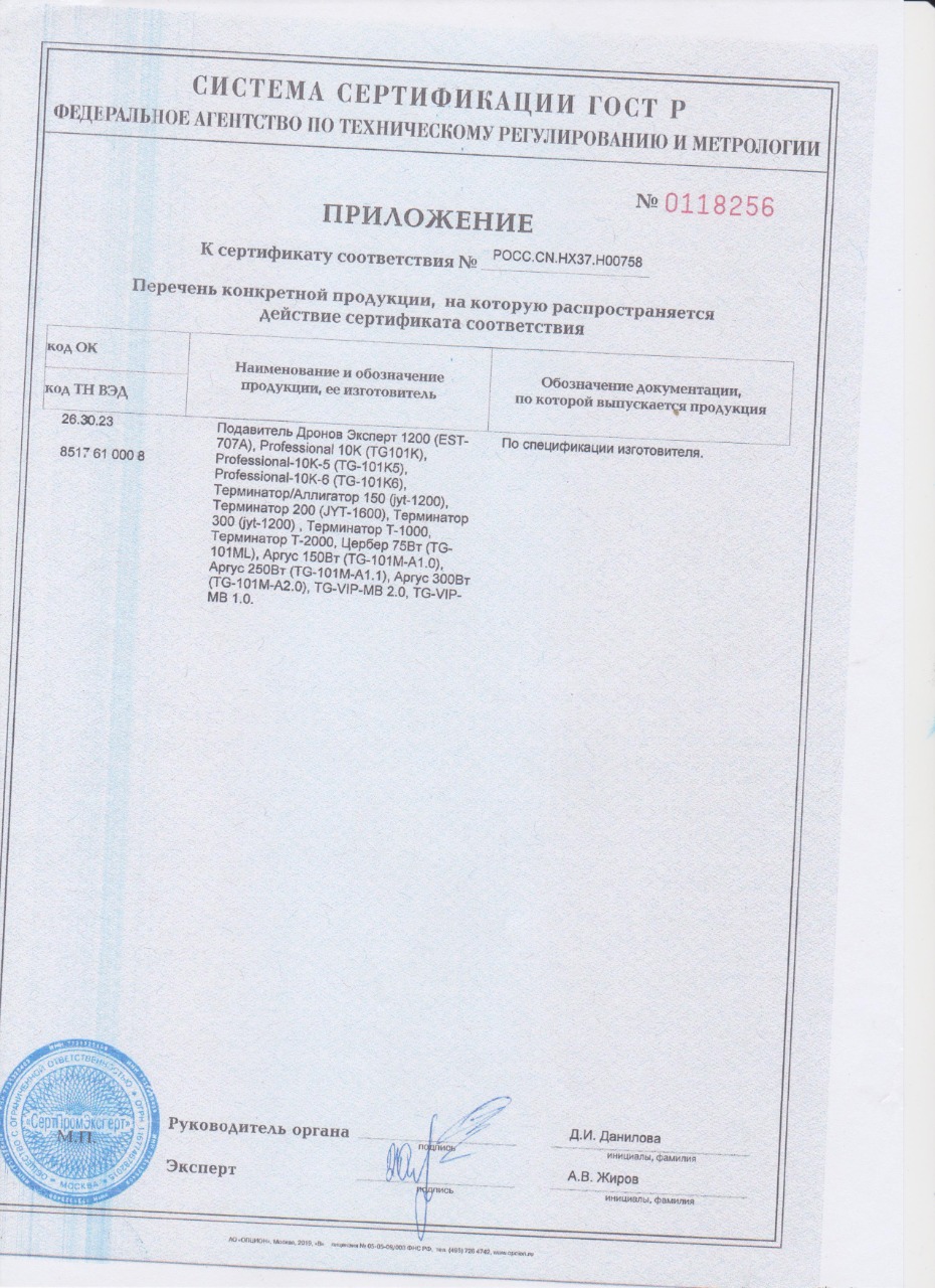 - Радиус подавления: до 40 метров